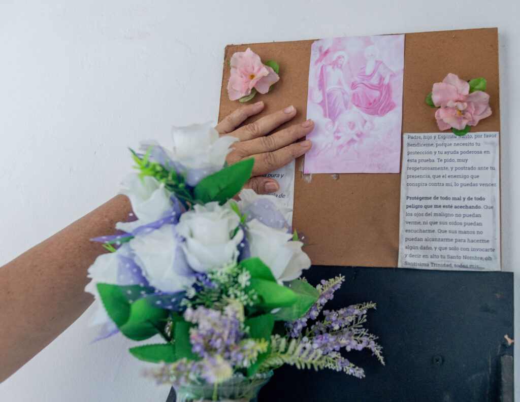 Mientras habla, se esbozan en sus ojos algunas lágrimas al recordar su historia, dice que encuentra fuerza en su fe, rezando diariamente en un pequeño altar que ha puesto en su casa. Su esperanza en volver a Venezuela sigue viva, pero su prioridad ahora son sus nietos y su salud mental.
